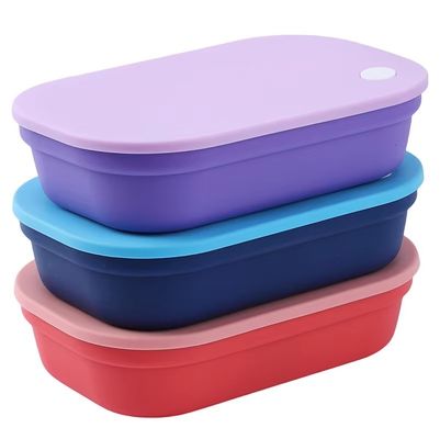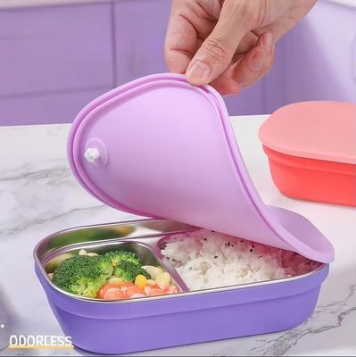 Leak-proof, dishwasher safe, easy to open & clean silicone & stainless steel lunch box for kids. Portable for daycare or travel.