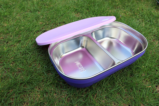 1x Stainless Steel Divided Lunch Box with a soft silicone lid and outer sleeve – leakproof, durable, and safe for daily use.